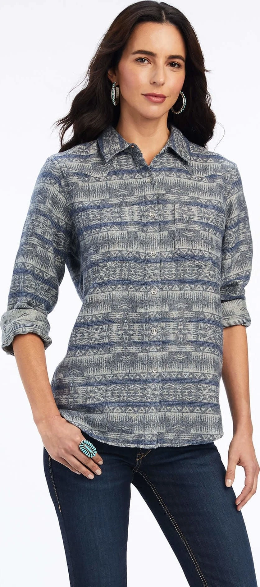 Panhandle Panhandle Ladies Grey Aztec Hoodie Shirt C4 Size Medium